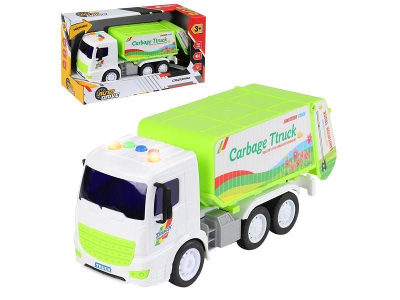 Машина AUTODRIVE "Мусоровоз" 21см инерц. на бат. со светом и звуком, зеленый, в/к 29,5*12*16,5