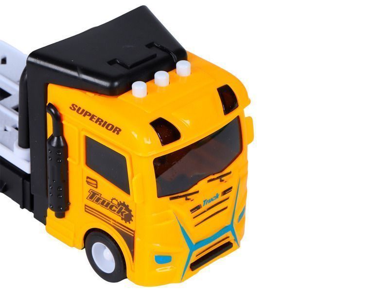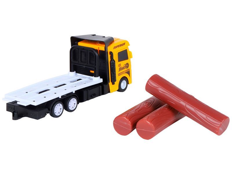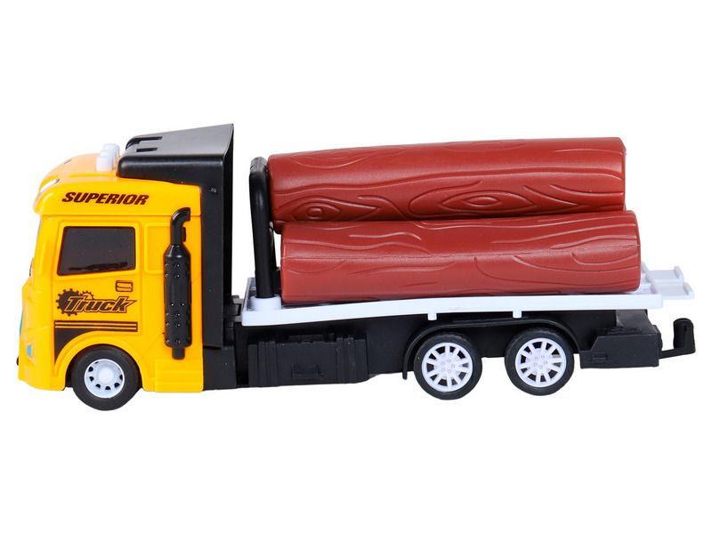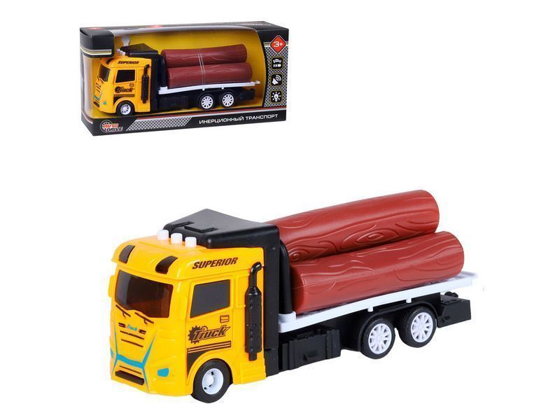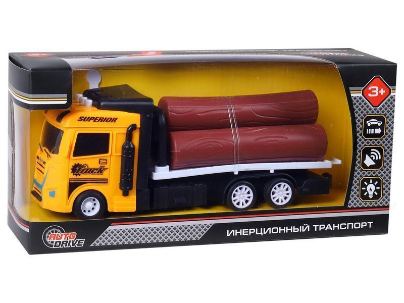 Машина AUTODRIVE Трейлер фрикционный с бревнами, со светом и звуком, жёлтый, в/к 23,5*7*11 см