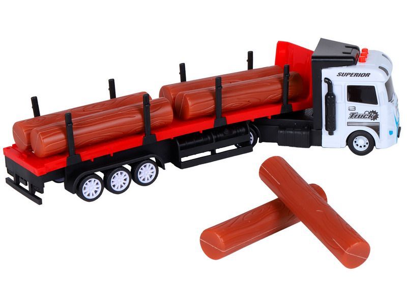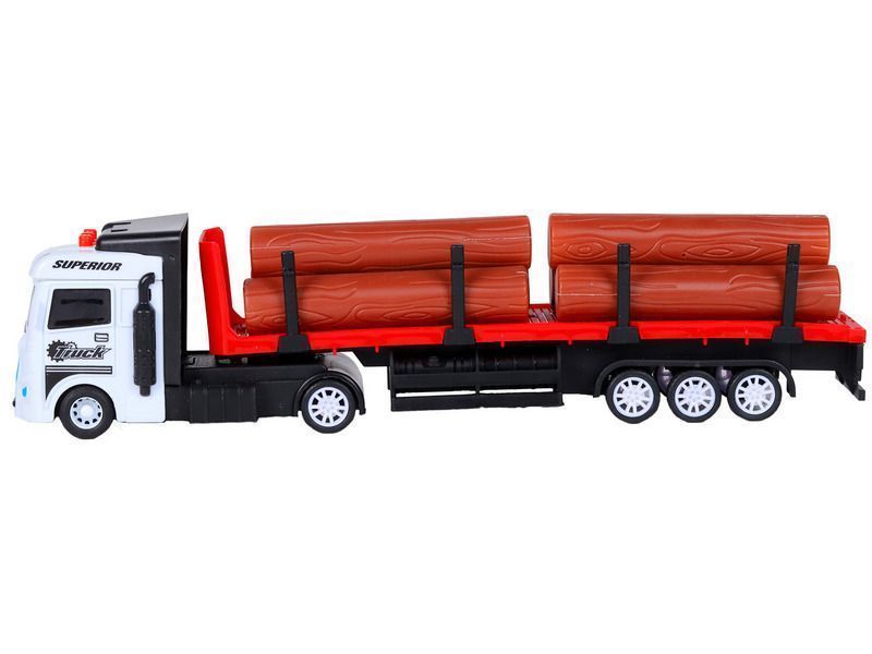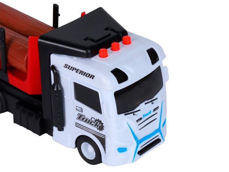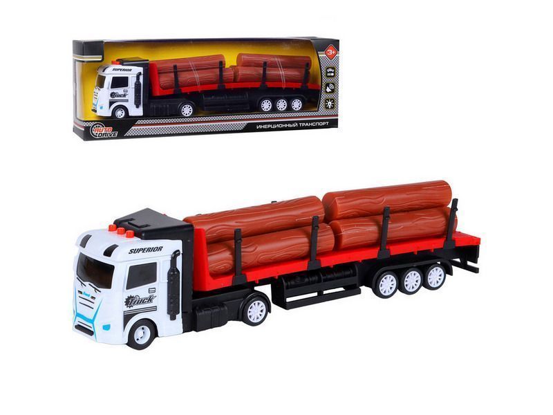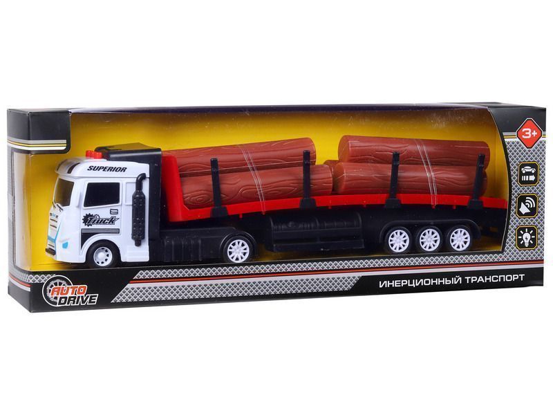 Машина AUTODRIVE Трейлер фрикционный с прицепом с бревнами, свет, звук, белый, в/к 35*6,5*12 см
