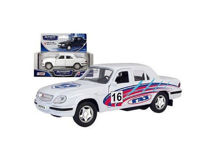 Инерционная коллекционная модель Autotime ГАЗ-31105 "Волга" - уменьшенная копия популярного в советское время автомобиля гражданского назначения. У нее вращаются колеса. Двери машинки открываются, это позволяет хозяину игрушки не только посмотреть, но и потрогать салон машинки. Машина окрашена в спортивную символику.
