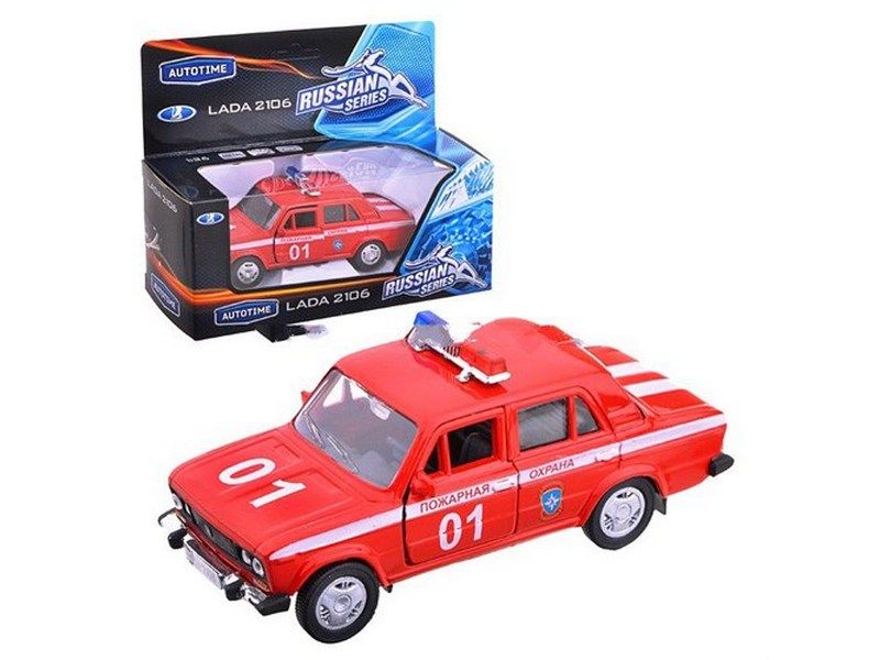 Инерционная коллекционная модель Autotime Lada 2106 Пожарная охрана - уменьшенная копия реального автомобиля. Игрушка изготовлена из металла и высококлассного пластика. Уровень детализации машинки достаточно высок. У нее вращаются колеса. Двери машинки открываются, это позволяет хозяину игрушки не только посмотреть, но и потрогать салон машинки. Модель машины окрашена в характерный для пожарной охраны ярко-красный цвет с надписью 01 на дверях и оборудована спецсигналами на крыше.