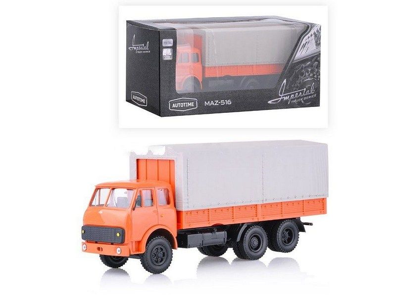 Коллекционная модель машины MAZ-516 - это мини-копия настоящей машины. Данная модель выполнена с тщательной детализацией и представлена в масштабе 1:43. Машина подобного типа выходили с конвейера Минского завода еще в далеких 60-х годах прошлого века. Кузов машины обтянут брезентом, который легко снимается в случае необходимости.