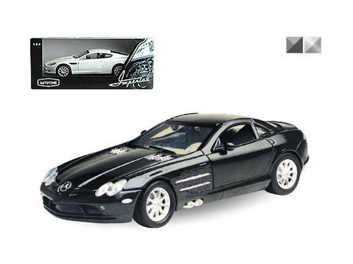 Инерционная коллекционная модель Autotime Mercedes-Benz SLR McLaren - детализированная уменьшенная копия реальной машины, сделанная в масштабе 1:24. У нее вращаются колеса. Двери машинки открываются, что позволяет рассмотреть салон изнутри в деталях. Модель машины SLR McLaren имеет два варианта расцветки.