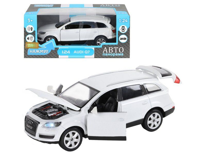 Металлическая лицензионная машинка Audi Q7 - уменьшенная копия настоящего внедорожника, которая прекрасно дополнит игрушечный автопарк. Модель машинки детально проработана и выполнена с узнаваемым ярким дизайном. Машинка выпущена известной компанией по производству игрушек Автопанорама. Особенность коллекции в том, что все модели изготовлены по лицензии именитых автопроизводителей.
