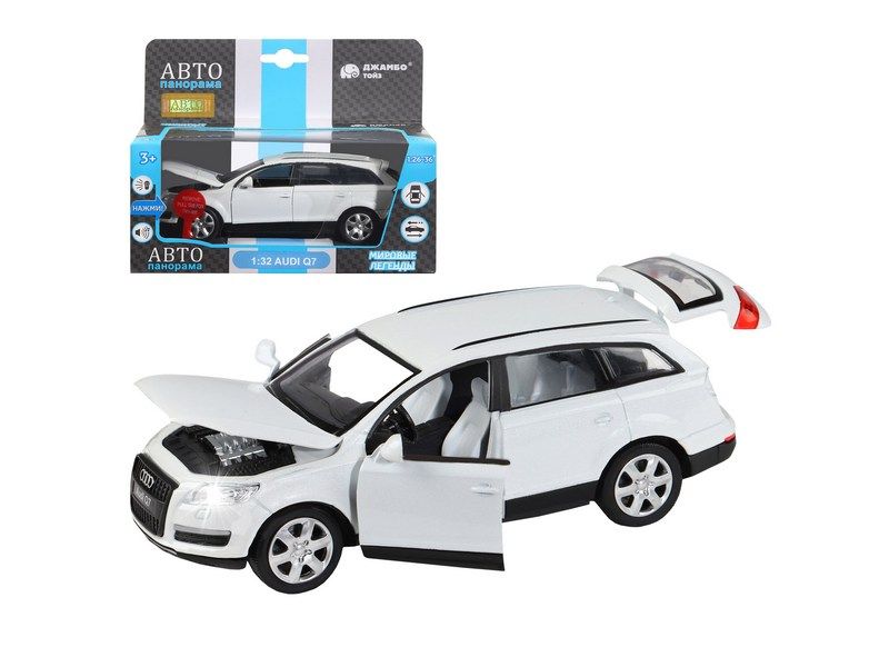 Металлическая машинка Audi Q7 - уменьшенная копия популярного кроссовера в масштабе 1:32. Она отлично дополнит игрушечный автопарк и станет прекрасным подарком для маленького автолюбителя. Модель машинки детально проработана и выполнена с легко узнаваемым дизайном, как у оригинала. Машинка выпущена известной компанией по производству игрушек Автопанорама. Особенность коллекции в том, что все модели изготовлены по лицензии именитых автопроизводителей.