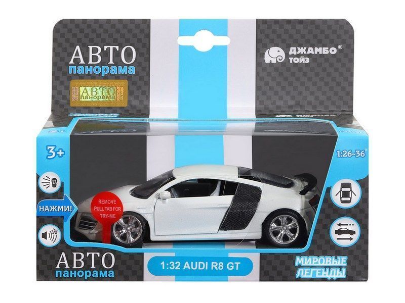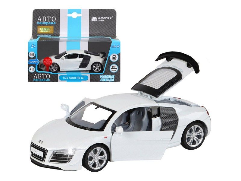 Металлическая машинка AUDI R8 GT - уменьшенная копия роскошного спортивного автомобиля в масштабе 1:32. Она отлично дополнит игрушечный автопарк и станет прекрасным подарком для маленького автолюбителя. Модель машинки детально проработана и выполнена с легко узнаваемым спортивным дизайном как у оригинала. Машинка выпущена известной компанией по производству игрушек Автопанорама. Особенность коллекции в том, что все модели изготовлены по лицензии именитых автопроизводителей.