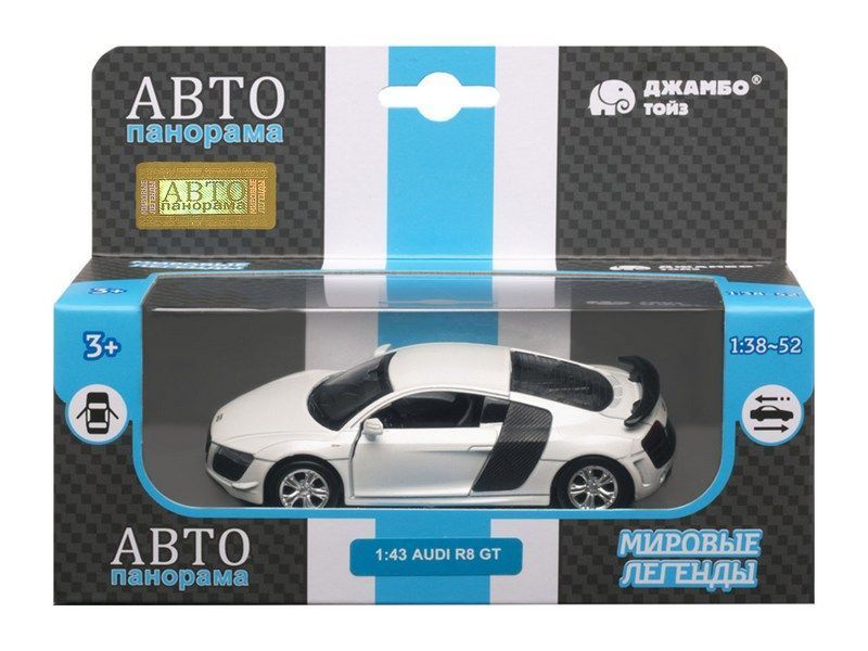 Машина "АВТОПАНОРАМА" Audi R8 GT, белый металлик, 1/43, инерция, в/к 17,5*12,5*6,5 см