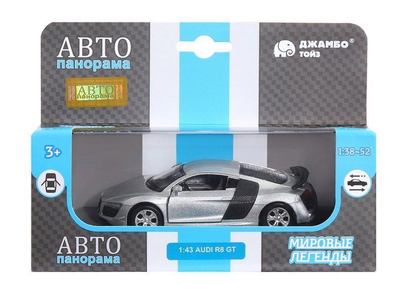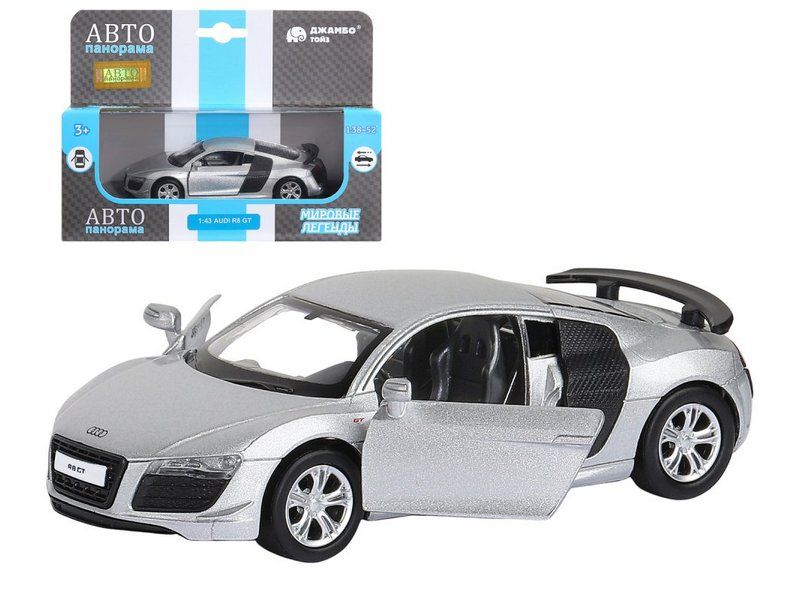 Машина "АВТОПАНОРАМА" Audi R8 GT, серебро, 1/43, инерция, в/к 17,5*12,5*6,5 см
