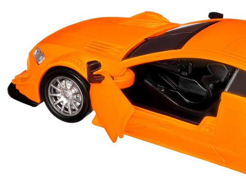 Модель выполнена в масштабе 1:43, у нее открываются двери и вращаются резиновые колеса. Игрушка оснащена инерционным механизмом - если откатить автомобиль немного назад и отпустить, он поедет вперед.