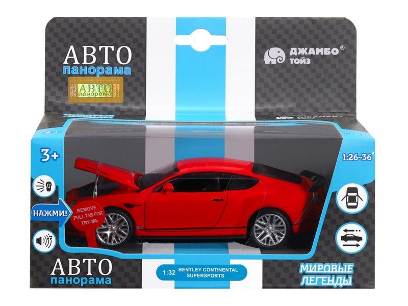 Металлическая машинка Bentley Continental GT Supersports - уменьшенная копия легендарного автомобиля в масштабе 1:32. Она отлично дополнит игрушечный автопарк и станет прекрасным подарком для маленького автолюбителя. Модель машинки детально проработана и выполнена с легко узнаваемым спортивным дизайном как у оригинала. Машинка выпущена известной компанией по производству игрушек Автопанорама. Особенность коллекции в том, что все модели изготовлены по лицензии именитых автопроизводителей.