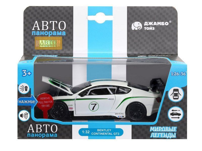 Металлическая машинка Bentley Continental GT3 - уменьшенная копия роскошного спортивного автомобиля в масштабе 1:32. Она отлично дополнит игрушечный автопарк и станет прекрасным подарком для маленького автолюбителя. Модель машинки детально проработана и выполнена с легко узнаваемым спортивным дизайном как у оригинала. Машинка выпущена известной компанией по производству игрушек Автопанорама. Особенность коллекции в том, что все модели изготовлены по лицензии именитых автопроизводителей.