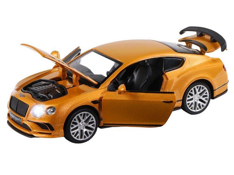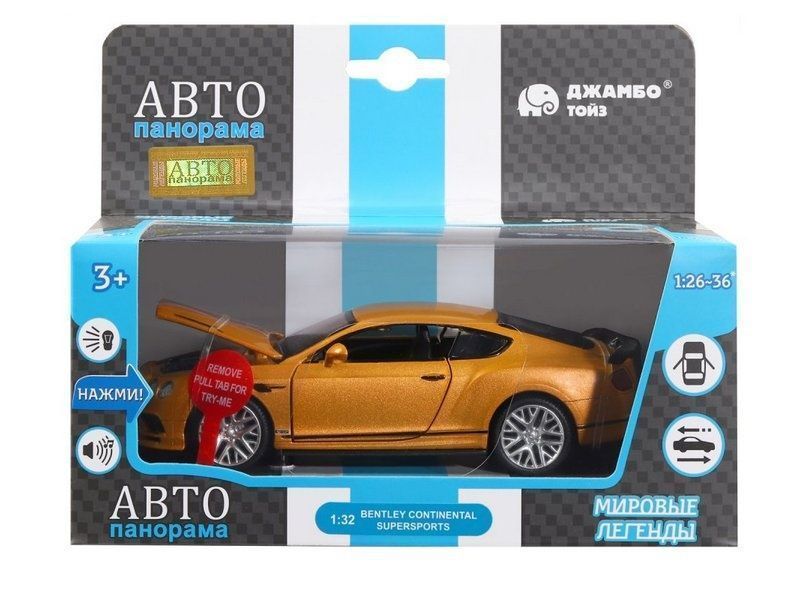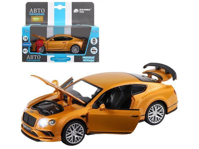 Металлическая машинка Bentley Continental Supersports - уменьшенная копия легендарного автомобиля в масштабе 1:32. Она отлично дополнит игрушечный автопарк и станет прекрасным подарком для маленького автолюбителя. Модель машинки детально проработана и выполнена с легко узнаваемым спортивным дизайном как у оригинала. Машинка выпущена известной компанией по производству игрушек Автопанорама. Особенность коллекции в том, что все модели изготовлены по лицензии именитых автопроизводителей.