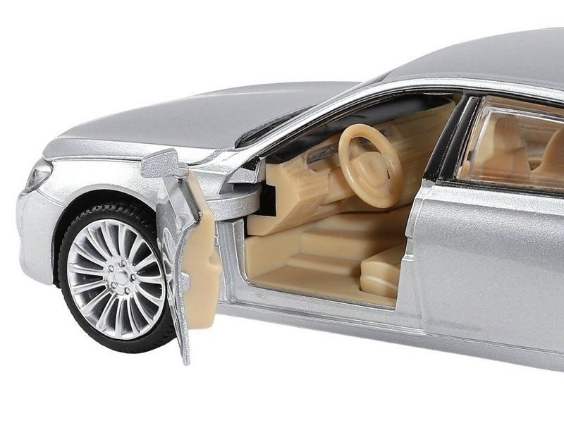 Модель выполнена в масштабе 1:34, у нее открываются двери, капот, багажник. Колеса с резиновыми покрышками и литыми дисками, детально проработанный салон и моторный отсек, прозрачные окна и крыша, фары - всё как у настоящего автомобиля.
