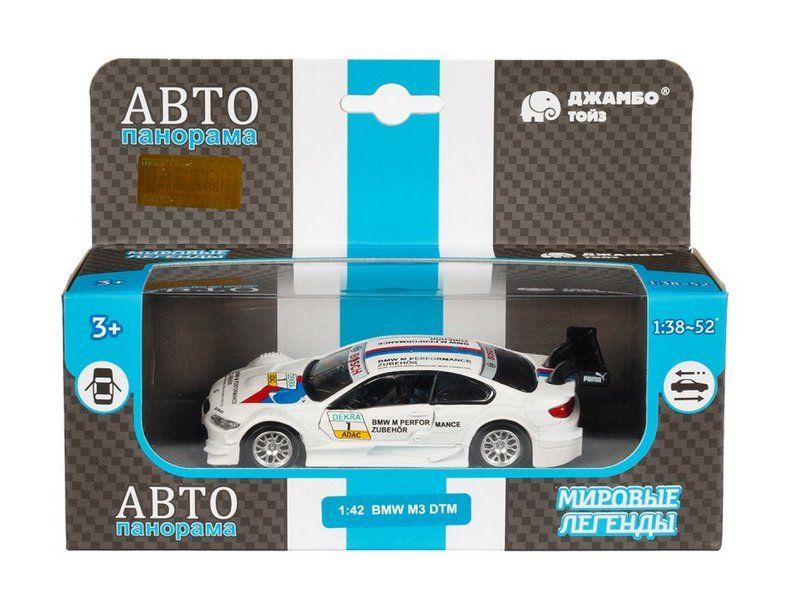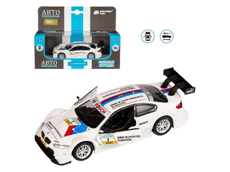 Металлическая лицензионная машинка BMW M3 DTM - уменьшенная копия роскошного гоночного автомобиля в масштабе 1:42. Машинка выпущена известной компанией по производству игрушек Автопанорама. Особенность коллекции в том, что все модели изготовлены по лицензии именитых автопроизводителей. Модель детально проработана, у нее открываются передние двери и вращаются резиновые колеса.