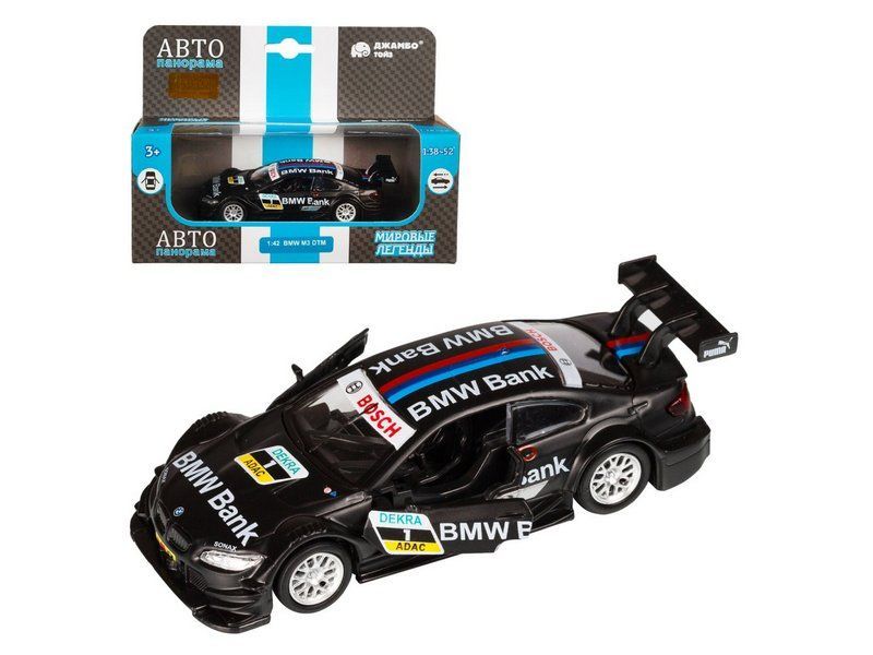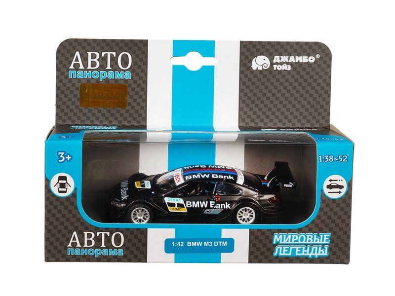 Металлическая лицензионная машинка BMW M3 DTM - уменьшенная копия роскошного гоночного автомобиля в масштабе 1:42. Машинка выпущена известной компанией по производству игрушек Автопанорама. Особенность коллекции в том, что все модели изготовлены по лицензии именитых автопроизводителей. Модель детально проработана, у нее открываются передние двери и вращаются резиновые колеса.
