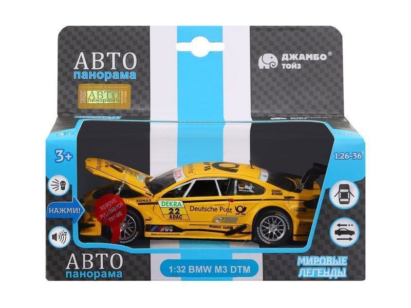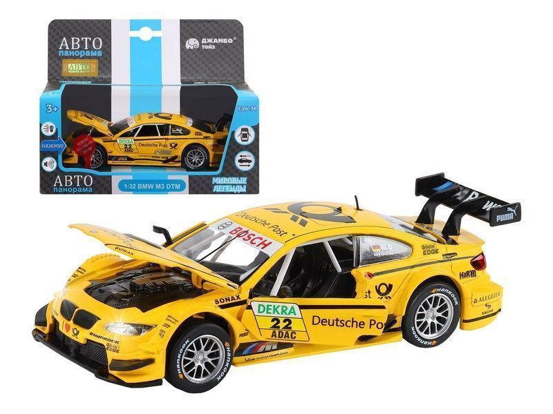 Металлическая машинка BMW M3 DTM - уменьшенная копия роскошного спортивного автомобиля в масштабе 1:32. Она отлично дополнит игрушечный автопарк и станет прекрасным подарком для маленького автолюбителя. Модель машинки детально проработана и выполнена с легко узнаваемым спортивным дизайном как у оригинала. Машинка выпущена известной компанией по производству игрушек Автопанорама. Особенность коллекции в том, что все модели изготовлены по лицензии именитых автопроизводителей.
