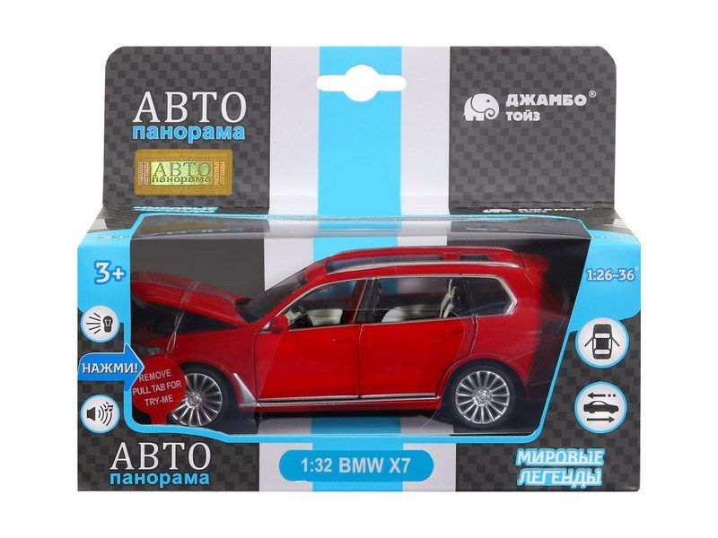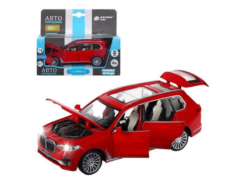 Машина "АВТОПАНОРАМА" BMW X7, красный, 1/32, свет, звук, инерция, в/к 17,5*13,5*9 см
