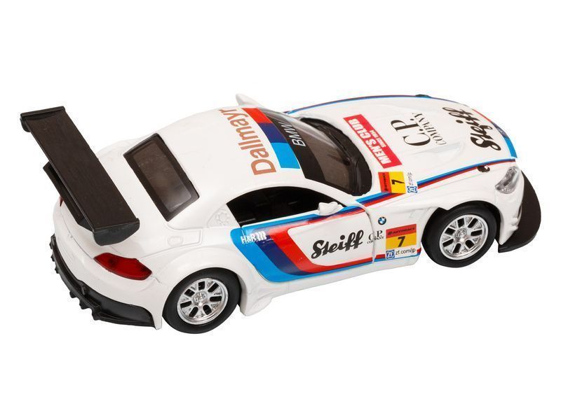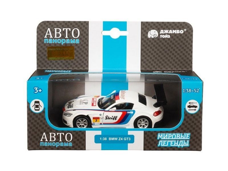 Металлическая лицензионная машинка BMW Z4 GT3 - уменьшенная копия роскошного спортивного автомобиля в масштабе 1:38. Машинка выпущена известной компанией по производству игрушек Автопанорама. Особенность коллекции в том, что все модели изготовлены по лицензии именитых автопроизводителей.