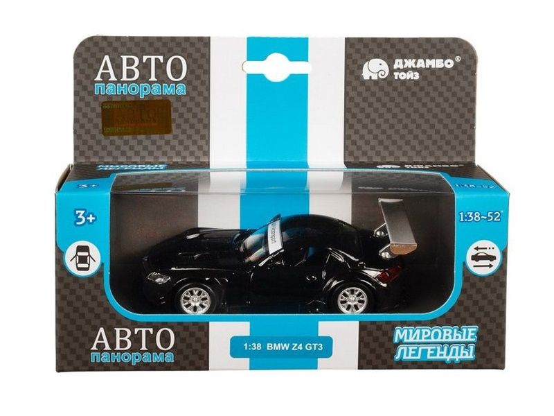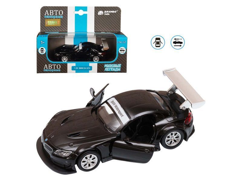 Машина "АВТОПАНОРАМА" BMW Z4 GT3, 1/38, черный, инерция, откр. двери, в/к 17,5*12,5*6,5 см