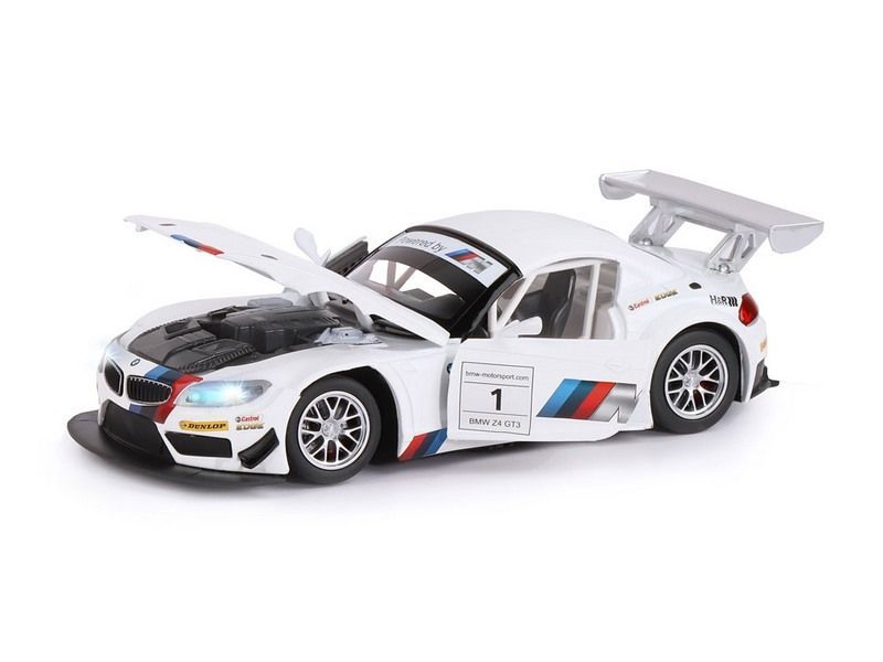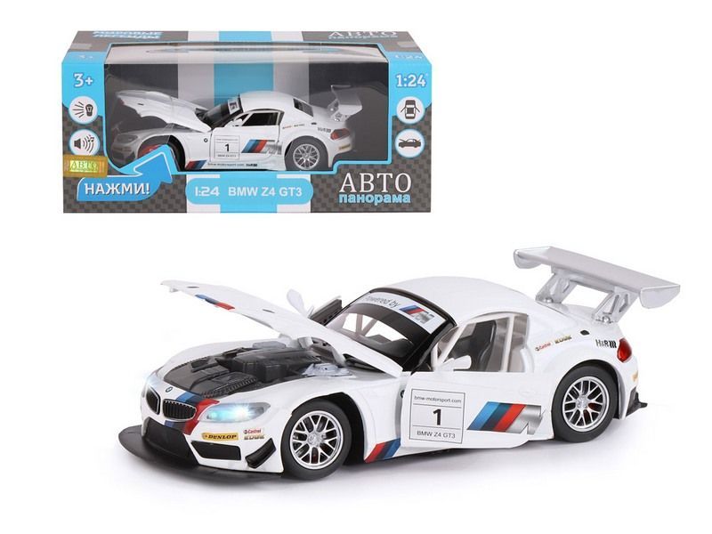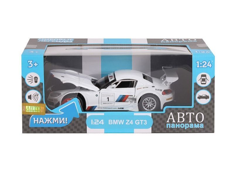 Машина "АВТОПАНОРАМА" BMW Z4 GT3, белый, 1/24, свет, звук, в/к 24,5*12,5*10,5 см