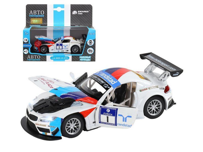 Металлическая машинка BMW Z4 GT - уменьшенная копия роскошного спортивного автомобиля в масштабе 1:32. Она отлично дополнит игрушечный автопарк и станет прекрасным подарком для маленького автолюбителя. Модель машинки детально проработана и выполнена с легко узнаваемым спортивным дизайном как у оригинала. Машинка выпущена известной компанией по производству игрушек Автопанорама. Особенность коллекции в том, что все модели изготовлены по лицензии именитых автопроизводителей.