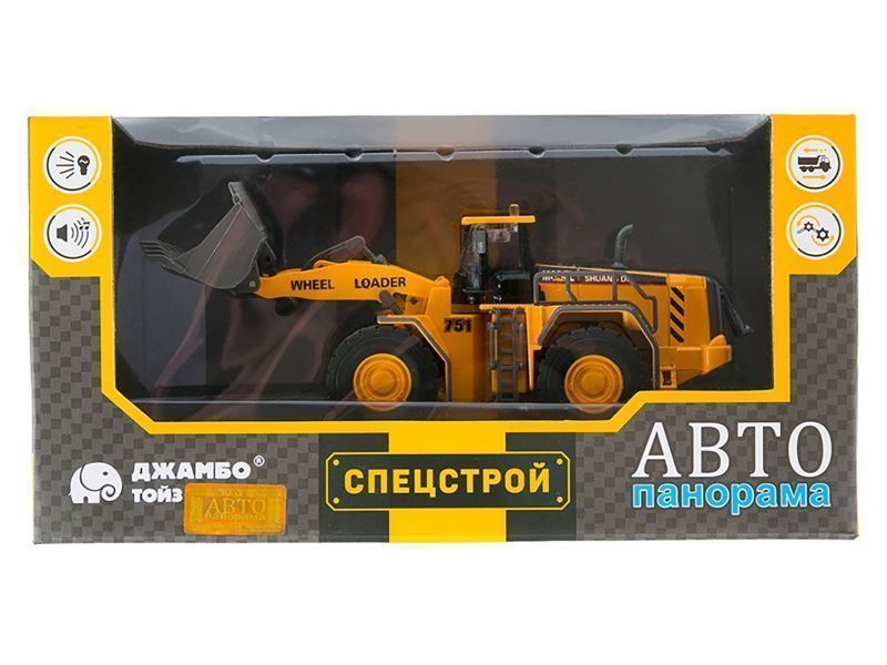 Модель выполнена в масштабе 1:50, имеет подвижные элементы, у нее поднимается и опускается ковш, при нажатии на корпус загорается свет фар и включается звук. Сверху на двигателе открывается лючок, что сделает игру более реалистичной и интересной.