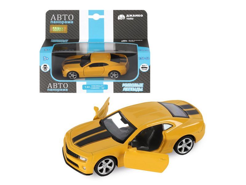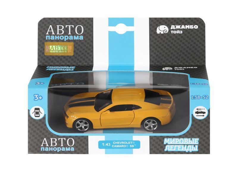 Металлическая лицензионная машинка Chevrolet Camaro SS - уменьшенная копия автомобиля в масштабе 1:43. Машинка выпущена известной компанией по производству игрушек Автопанорама. Особенность коллекции в том, что все модели изготовлены по лицензии именитых автопроизводителей.