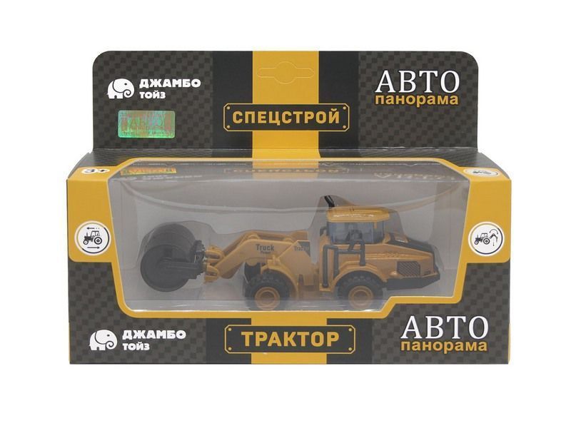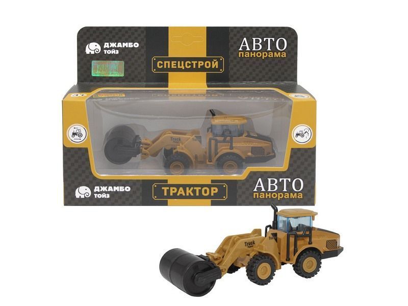 Машина "АВТОПАНОРАМА" ЭКСКАВАТОР КАТОК, желтый, инерция, в/к 20,5*7,5*9 см