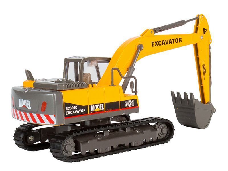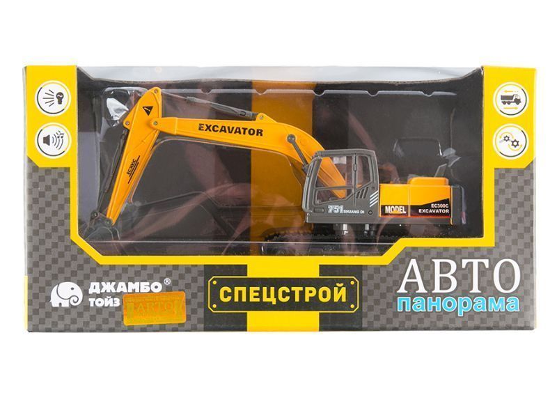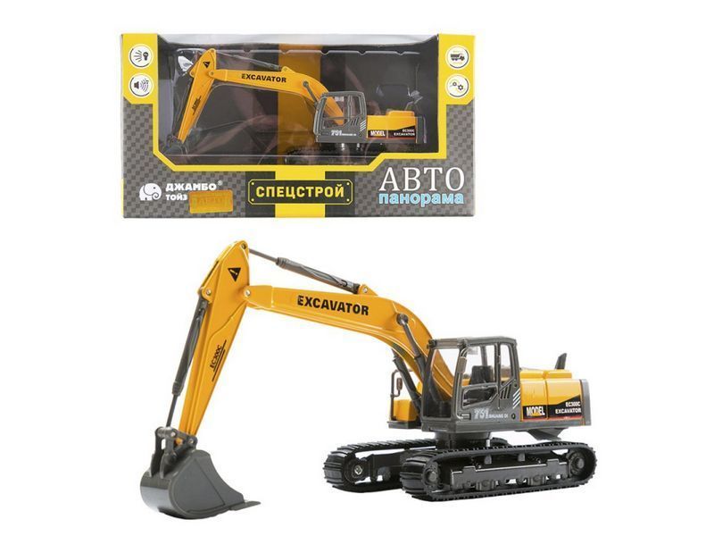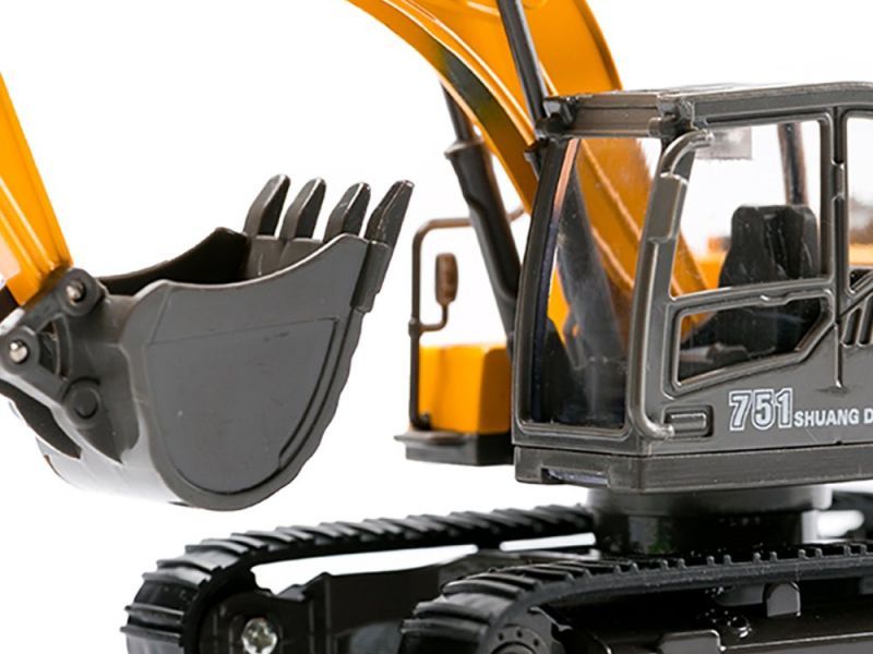 Модель выполнена в масштабе 1:50, имеет подвижные элементы: у нее поднимается и опускается ковш, двигаются гусеницы, а при нажатии на кнопку, расположенную на корпусе, загорается свет фар и включается звук. Сверху на двигателе открывается лючок, что сделает игру более реалистичной и интересной.
