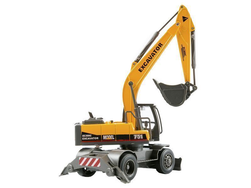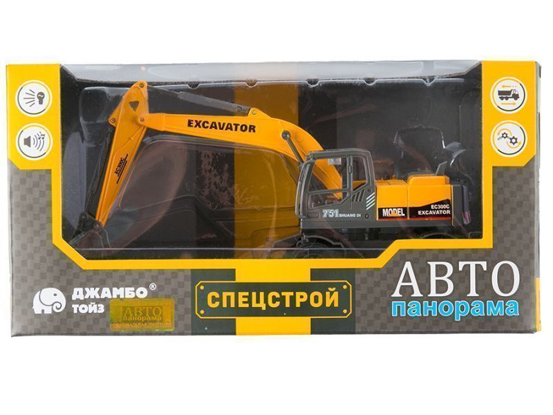 Металлическая машинка Экскаватор на колёсах - уменьшенная копия настоящей техники для маленьких строителей, с которой можно придумывать различные сюжеты для игры на строительную тематику. Она прекрасно дополнит игрушечный автопарк и станет отличным подарком. Машинка выпущена известной компанией по производству игрушек Автопанорама.