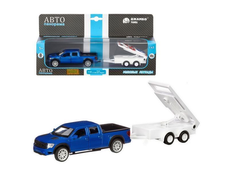 Металлическая лицензионная машинка Ford F-150 c прицепом с дорожными знаками - уменьшенная копия известного пикапа в масштабе 1:43. Машинка выпущена известной компанией по производству игрушек Автопанорама. Особенность коллекции в том, что все модели изготовлены по лицензии именитых автопроизводителей.
