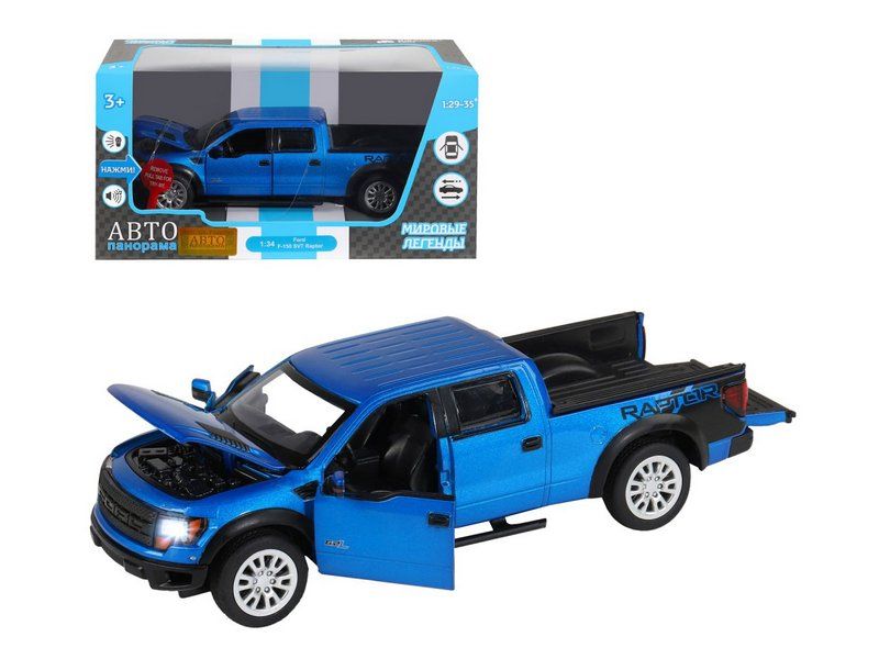 Металлическая машинка Ford F-150 SVT Raptor - уменьшенная копия мощного пикапа в масштабе 1:32. Она отлично дополнит игрушечный автопарк и станет прекрасным подарком для маленького автолюбителя. Модель машинки детально проработана и выполнена с легко узнаваемым дизайном как у оригинала. Машинка выпущена известной компанией по производству игрушек Автопанорама. Особенность коллекции в том, что все модели изготовлены по лицензии именитых автопроизводителей.