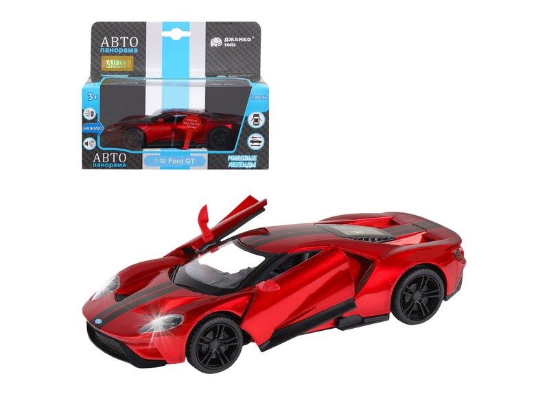 Металлическая машинка Ford GT - уменьшенная копия роскошного спортивного автомобиля в масштабе 1:32. Она отлично дополнит игрушечный автопарк и станет прекрасным подарком для маленького автолюбителя. Модель машинки детально проработана и выполнена с легко узнаваемым спортивным дизайном как у оригинала. Машинка выпущена известной компанией по производству игрушек Автопанорама. Особенность коллекции в том, что все модели изготовлены по лицензии именитых автопроизводителей.