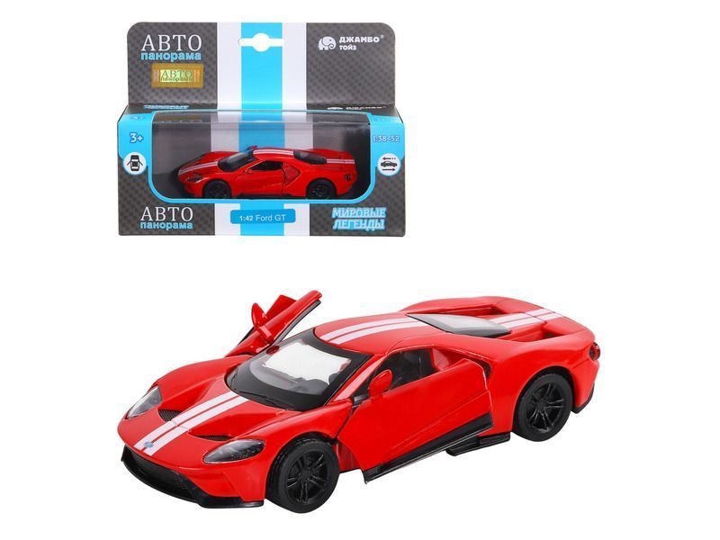 Металлическая лицензионная машинка Ford GT - уменьшенная копия роскошного спортивного автомобиля в масштабе 1:42. Машинка выпущена известной компанией по производству игрушек Автопанорама. Особенность коллекции в том, что все модели изготовлены по лицензии именитых автопроизводителей.