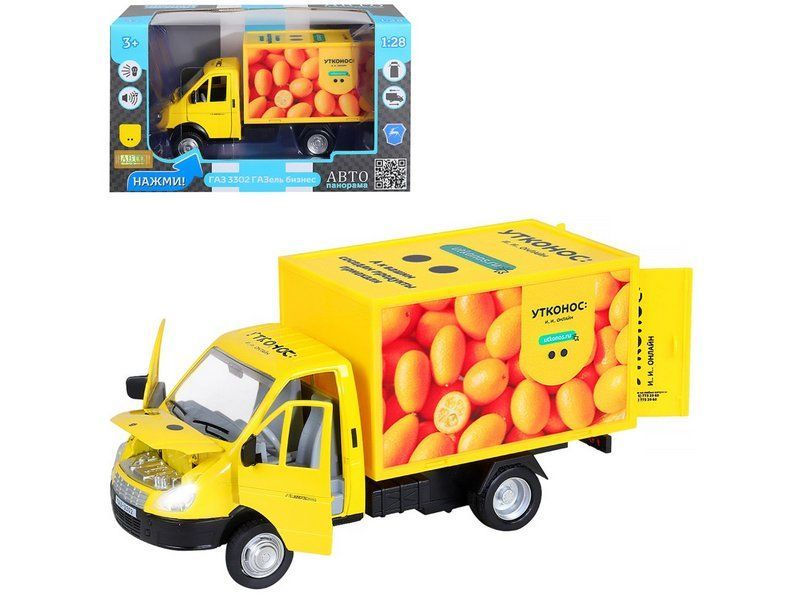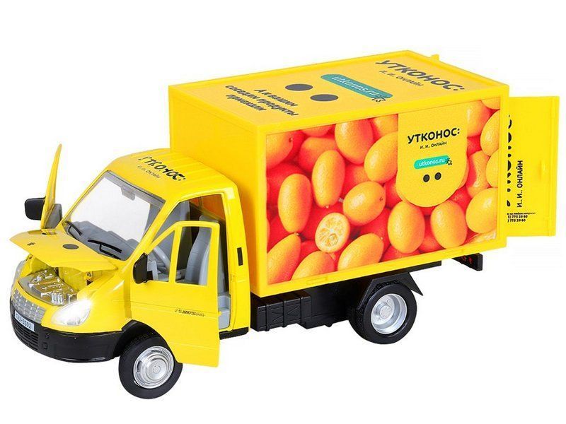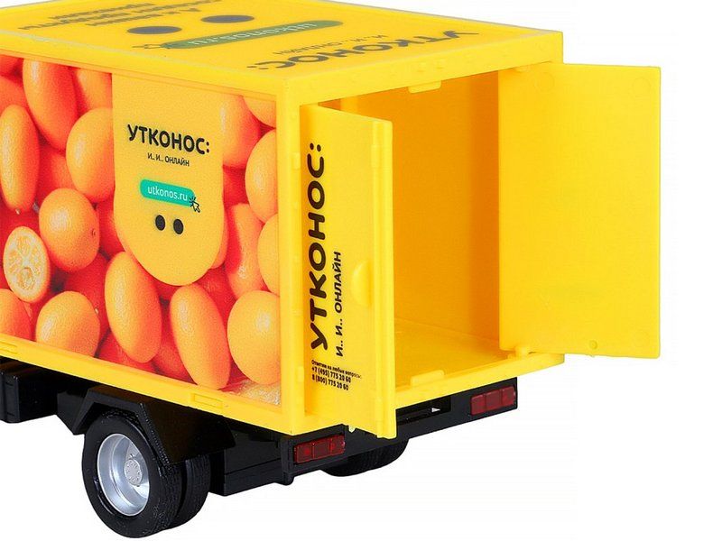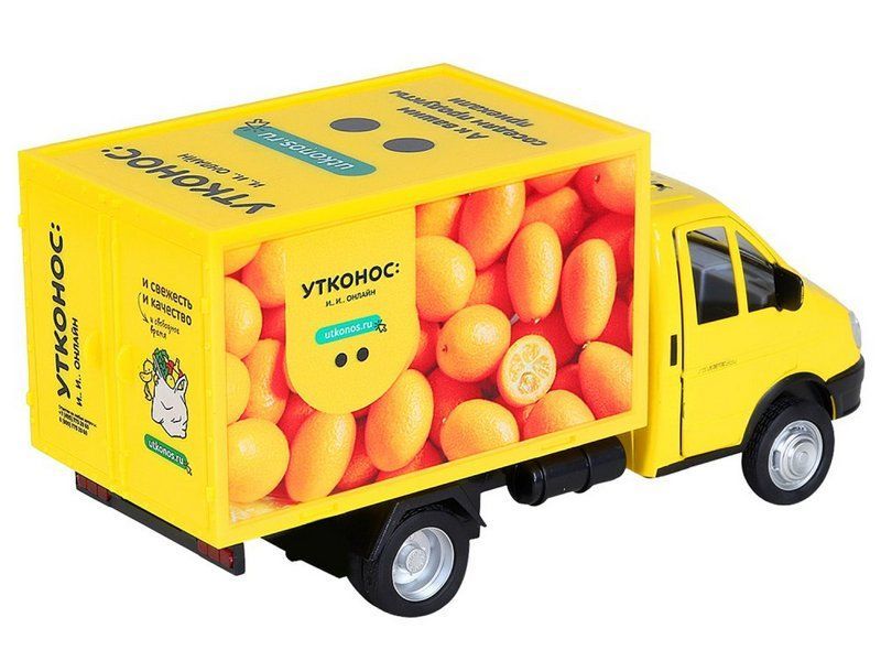 Инерционная металлическая машинка ГАЗель-бизнес Утконос "Кумкват" - модель в масштабе 1:28, выполненная по лицензии известнейшей компании по доставке товаров.