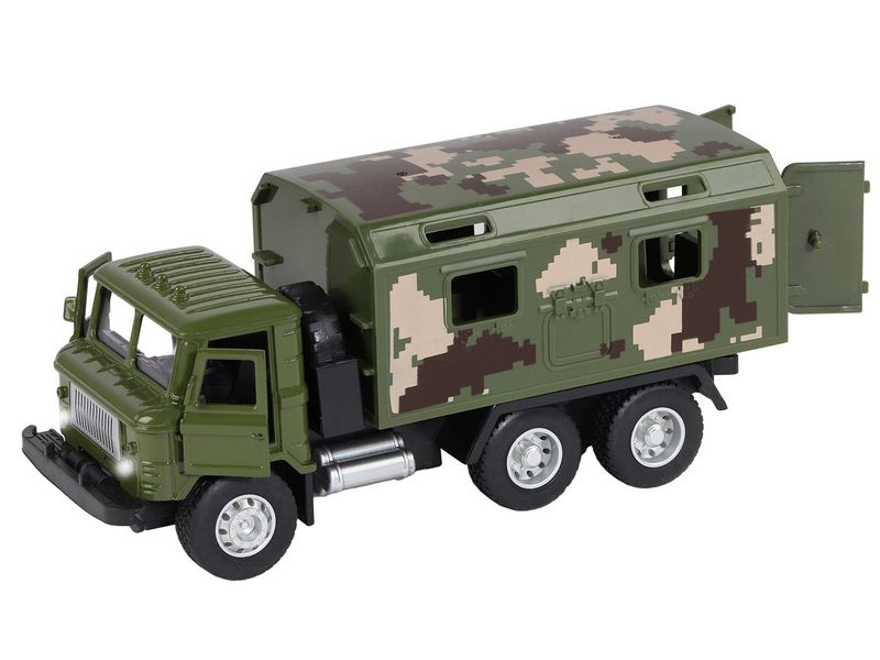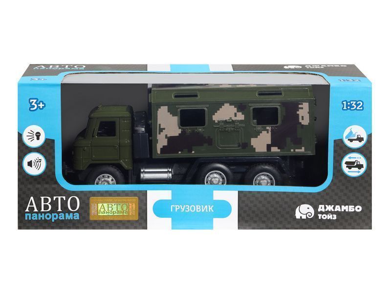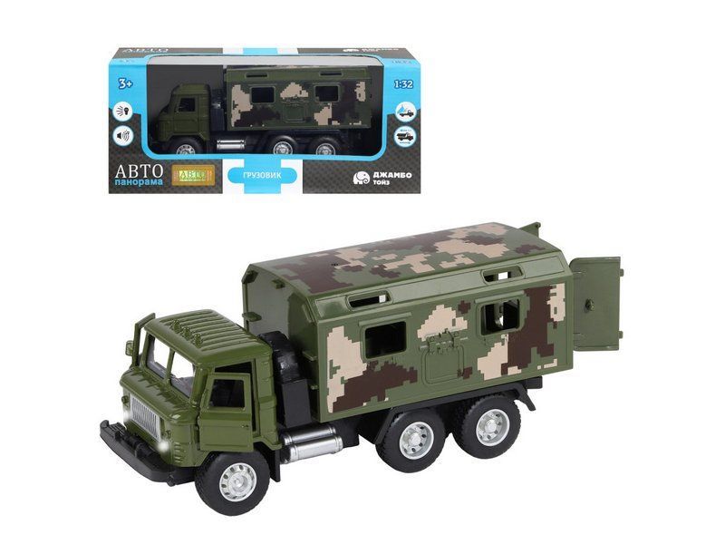 Машина "АВТОПАНОРАМА" "Грузовик", 1/32, хаки, откр. двери, свет, звук, инерция, в/к 24*8*10 см