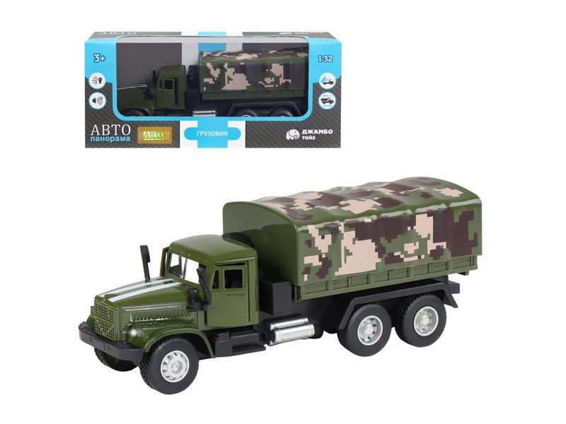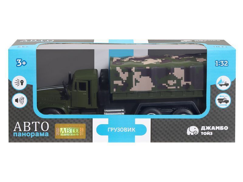 Инерционная игрушка Грузовик, выполненная из высококачественного металла и пластика, непременно понравится и ребенку, и взрослому. Грузовик - уменьшенная копия настоящей техники, с которой можно придумывать различные сюжеты для игры на военную тематику. Он прекрасно дополнит игрушечный автопарк и станет отличным подарком.