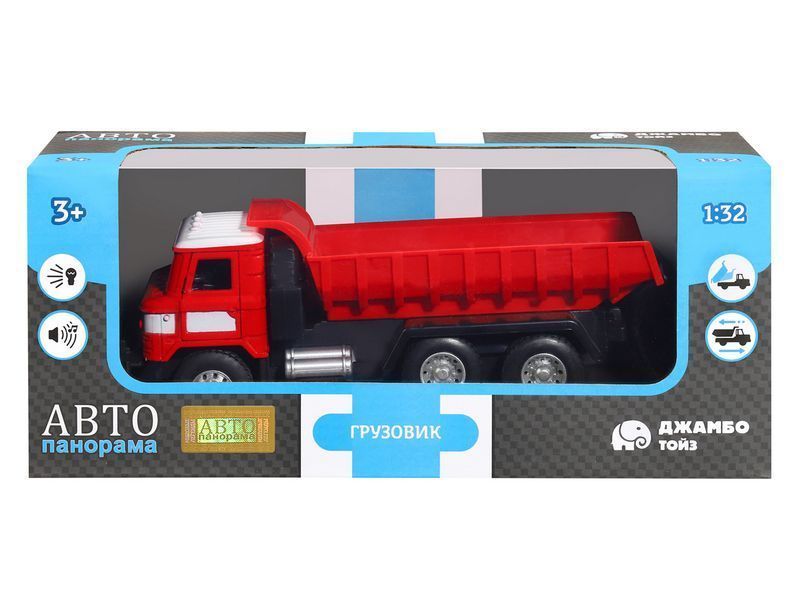 Игрушка оснащена инерционным ходом. Для того, чтобы грузовик поехал вперед, необходимо его отвести назад, а затем отпустить.