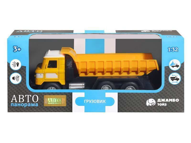 Игрушка оснащена инерционным ходом. Для того, чтобы грузовик поехал вперед, необходимо его отвести назад, а затем отпустить.