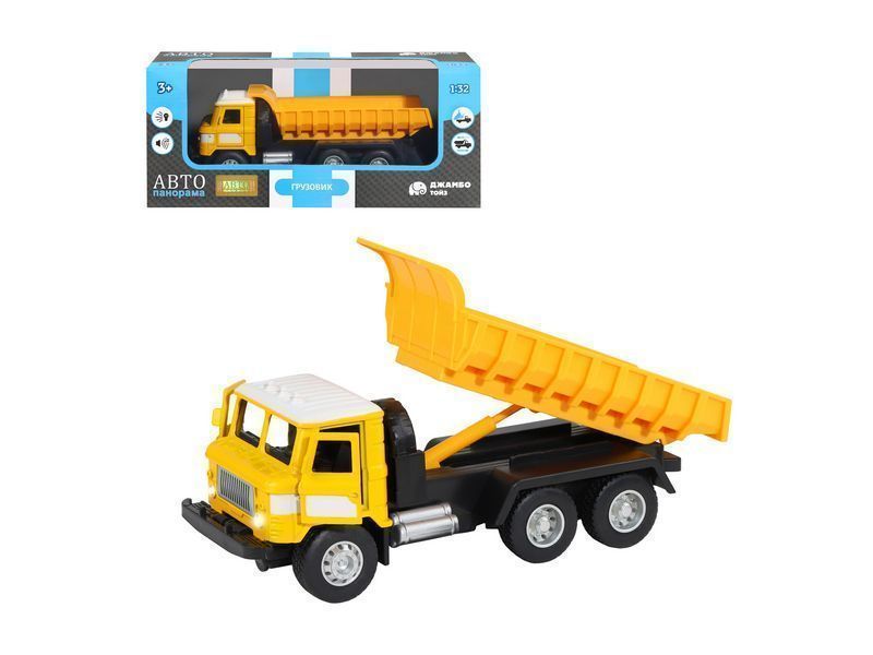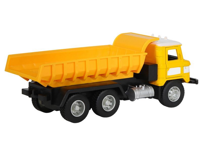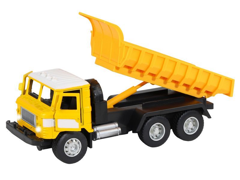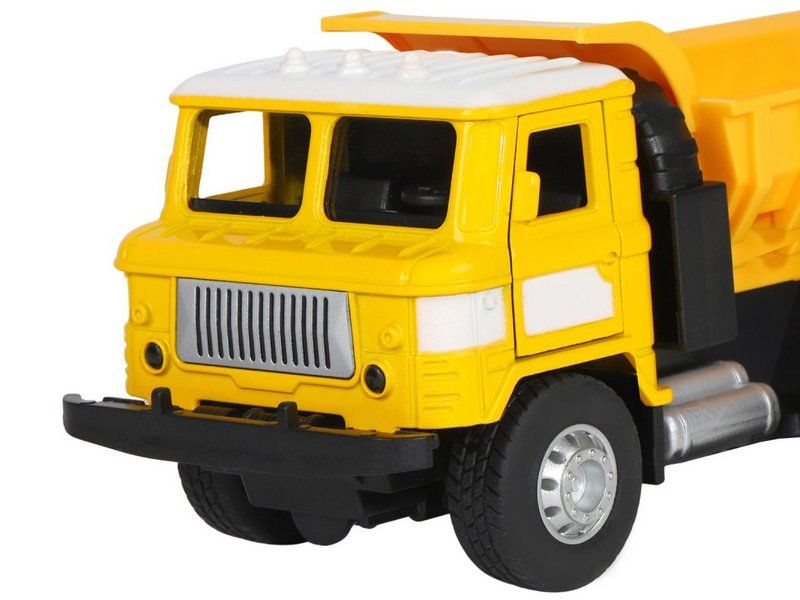 Игрушка хорошо детализирована, имеет крепкий корпус, подвижные элементы, у нее открываются двери в кабине, поднимается и опускается кузов, в котором можно перевозить небольшие предметы до места назначения.