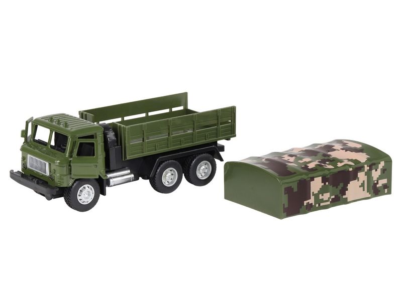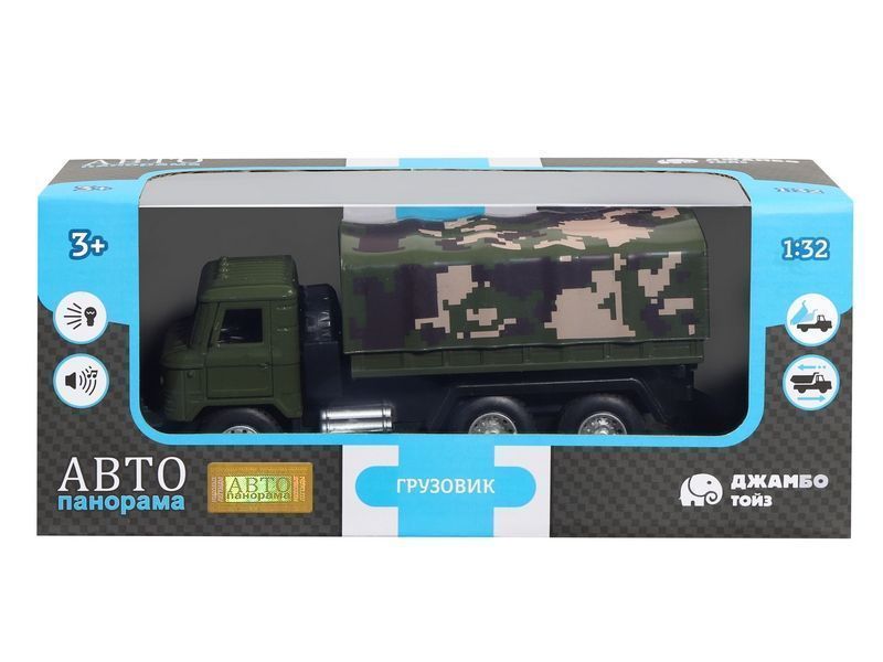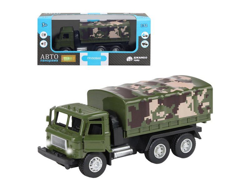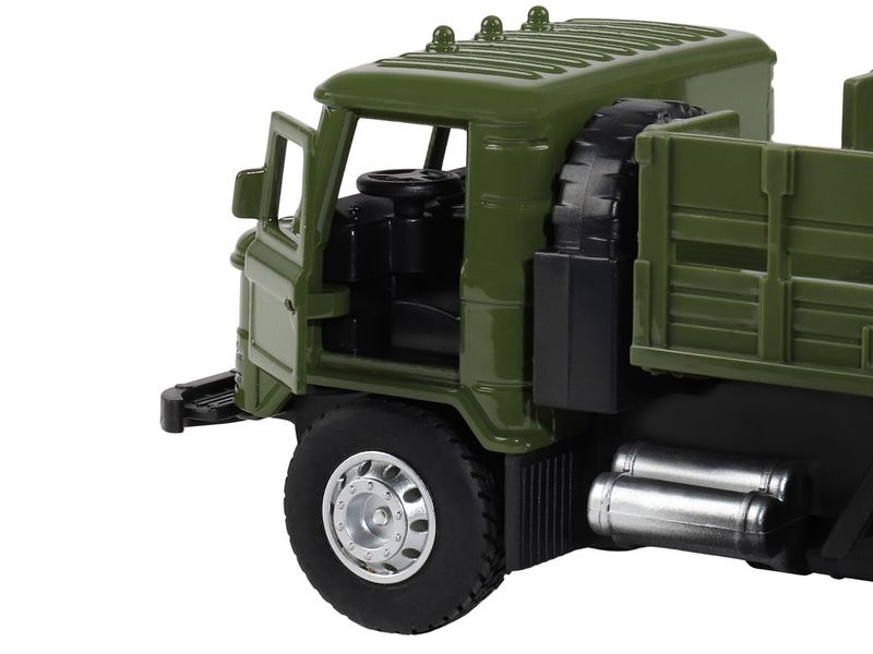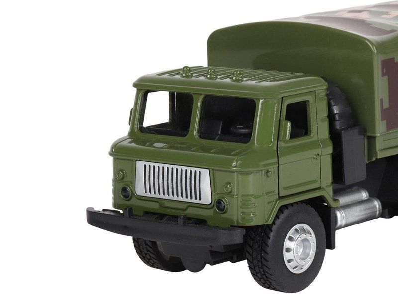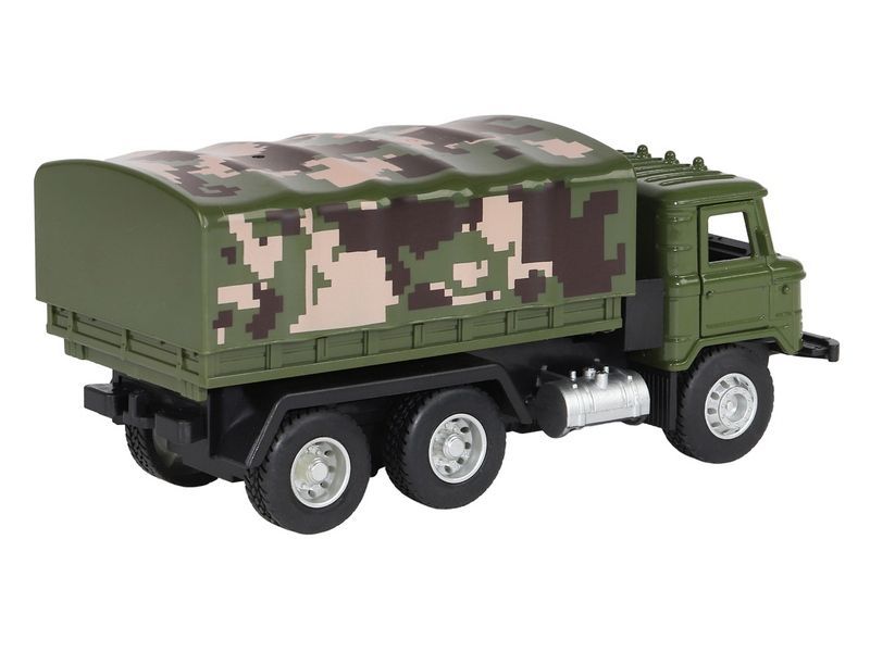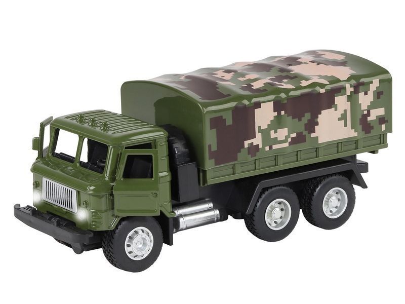 Инерционная игрушка Грузовик, выполненная из высококачественного металла и пластика, непременно понравится и ребенку, и взрослому. Грузовик - уменьшенная копия настоящей техники, с которой можно придумывать различные сюжеты для игры на военную тематику. Он прекрасно дополнит игрушечный автопарк и станет отличным подарком.