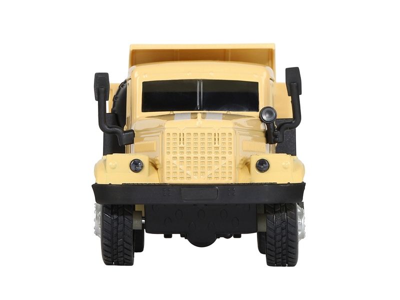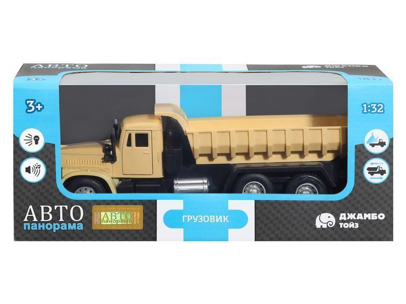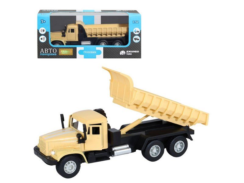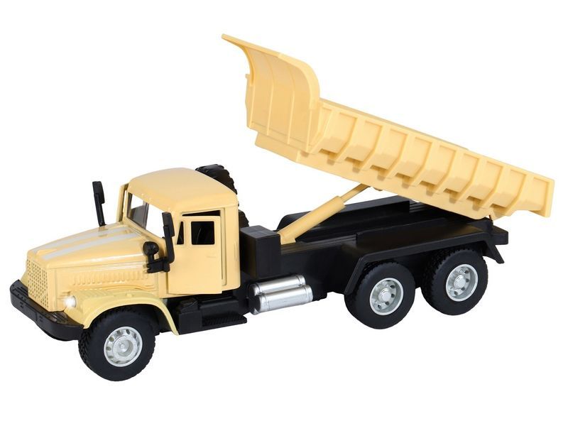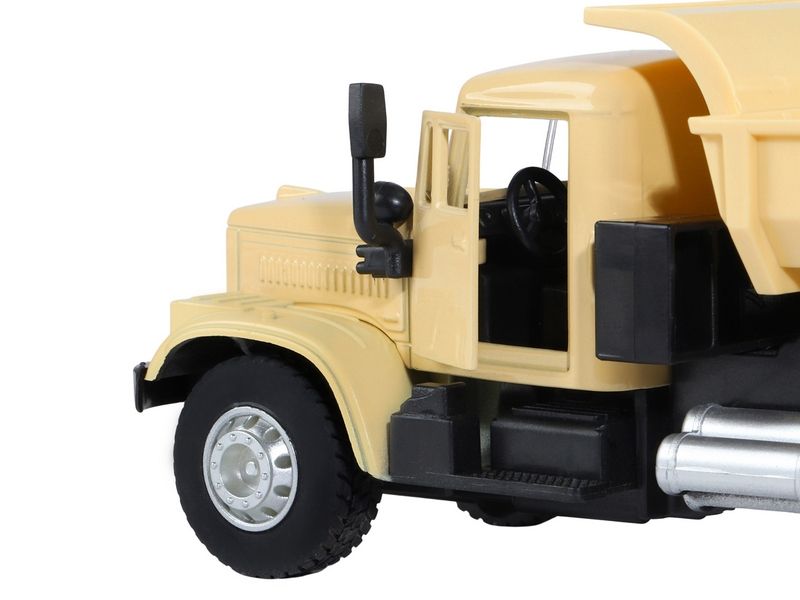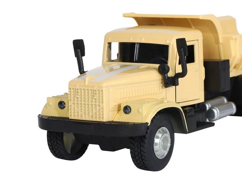 Игрушка хорошо детализирована, имеет крепкий корпус, подвижные элементы, у нее открываются двери в кабине, поднимается и опускается кузов, в котором можно перевозить небольшие предметы до места назначения.