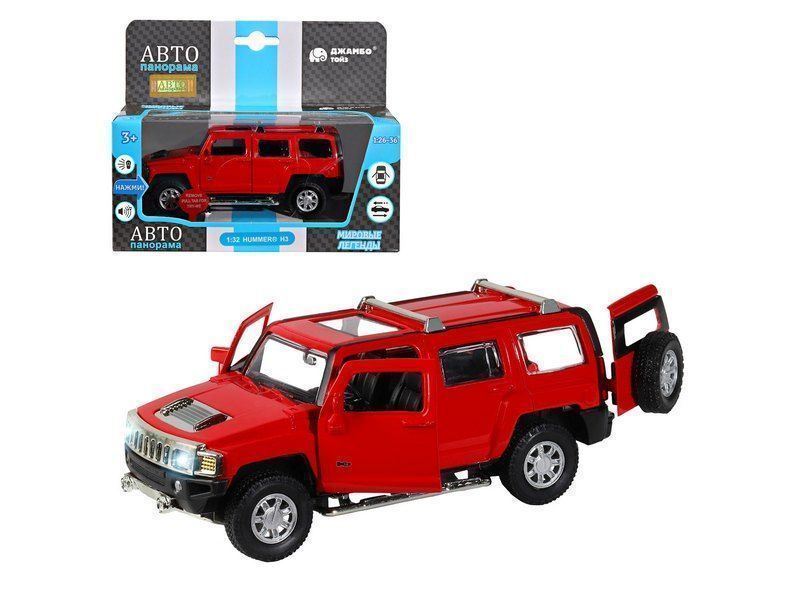 Металлическая машинка Hummer H3 - уменьшенная копия знаменитого мощного внедорожника прекрасной проходимости в масштабе 1:32. Она отлично дополнит игрушечный автопарк и станет прекрасным подарком для маленького автолюбителя. Модель машинки детально проработана и выполнена с легко узнаваемым дизайном как у оригинала. Машинка выпущена известной компанией по производству игрушек Автопанорама. Особенность коллекции в том, что все модели изготовлены по лицензии именитых автопроизводителей.