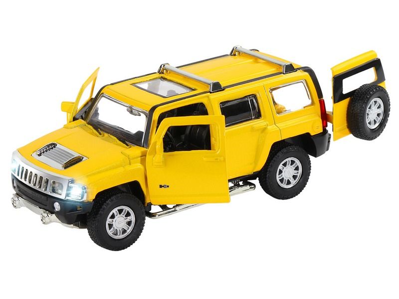 Машина "АВТОПАНОРАМА" Hummer H3, желтый, 1/32, свет, звук, инерция, в/к 17,5*13,5*9 см