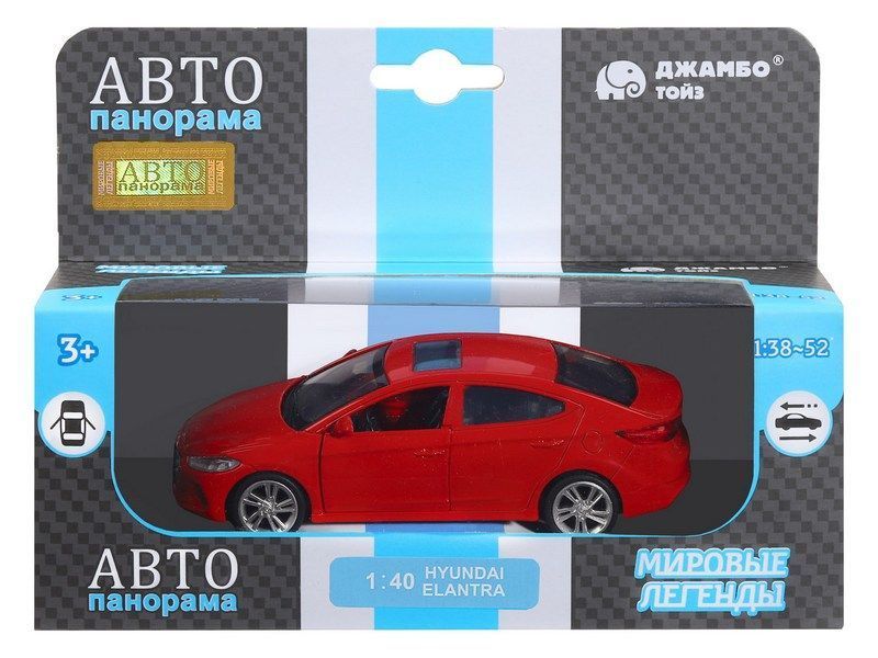 Машина "АВТОПАНОРАМА" HYUNDAI ELANTRA, красный, 1/40, инерция, в/к 17,5*12,5*6,5 см