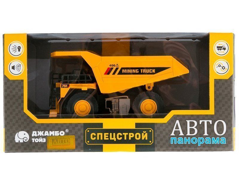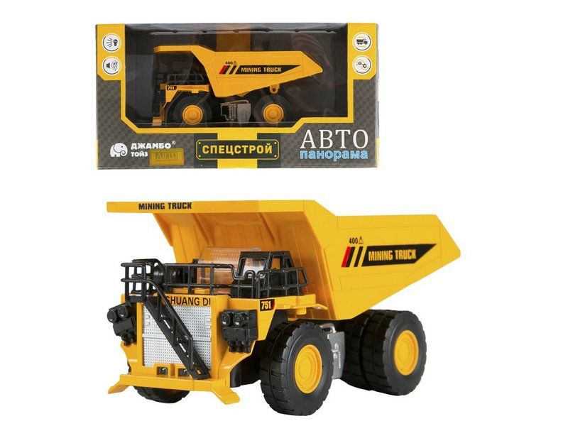 Машина "АВТОПАНОРАМА" КАРЬЕРНЫЙ САМОСВАЛ, желтый, 1/50, свет, звук, в/к 25*10*13 см