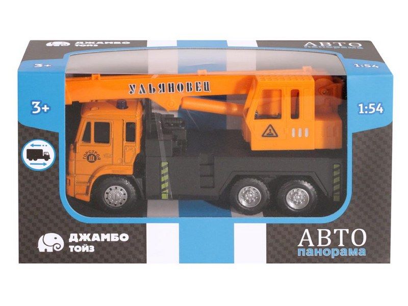 Модель "Крана" выполнена в виде металлического автокрана оранжевого цвета. Похожие машины иногда встречаются на улицах города или в музеях транспорта. Модель выполнена в масштабе 1:54, кабина крана вращается на 360°, регулируется угол наклона и длина стрелки.