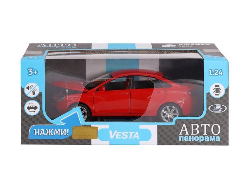 Металлическая лицензионная машинка LADA VESTA седан - уменьшенная копия машины нового поколения легендарной LADA, которая прекрасно дополнит игрушечный автопарк городского транспорта. Модель машинки детально проработана, с легко узнаваемым стильным, стремительным и ярким дизайном, которую часто можно встретить на улицах города. Машинка выпущена известной компанией по производству игрушек Автопанорама. Особенность коллекции в том, что все модели изготовлены по лицензии именитых автопроизводителей.