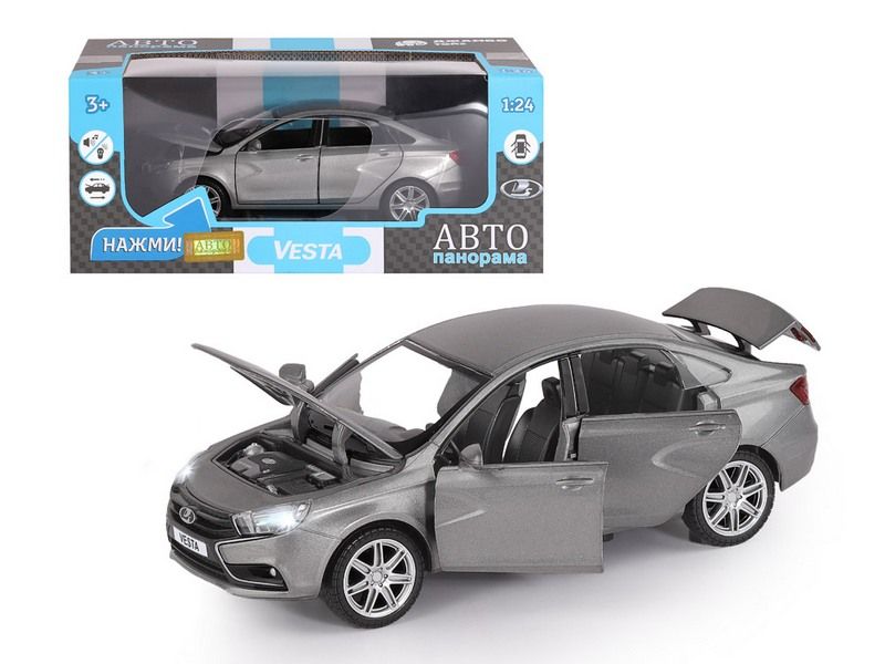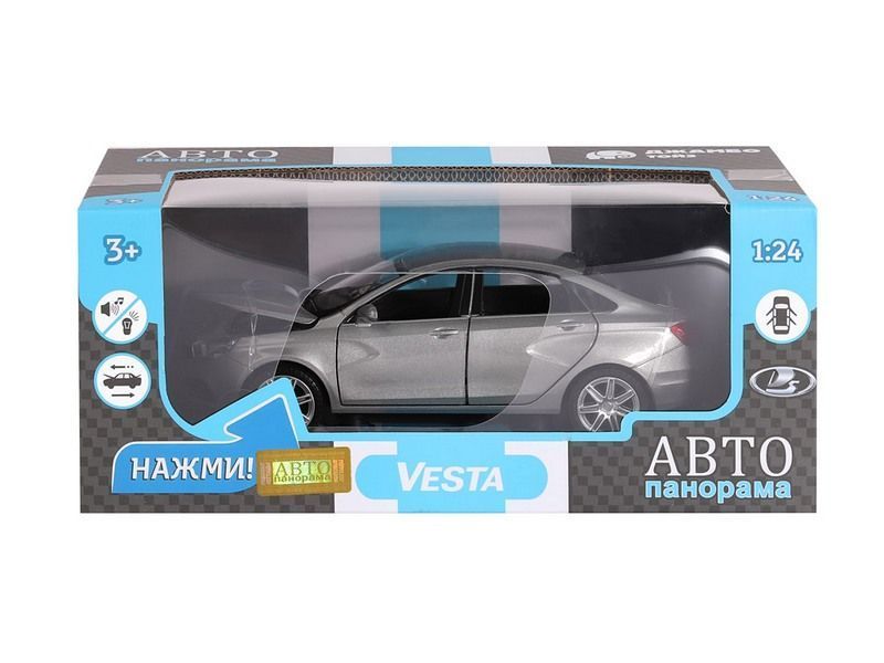 Металлическая лицензионная машинка LADA VESTA седан - уменьшенная копия машины нового поколения легендарной LADA, которая прекрасно дополнит игрушечный автопарк городского транспорта. Модель машинки детально проработана, с легко узнаваемым стильным, стремительным и ярким дизайном, которую часто можно встретить на улицах города. Машинка выпущена известной компанией по производству игрушек Автопанорама. Особенность коллекции в том, что все модели изготовлены по лицензии именитых автопроизводителей.