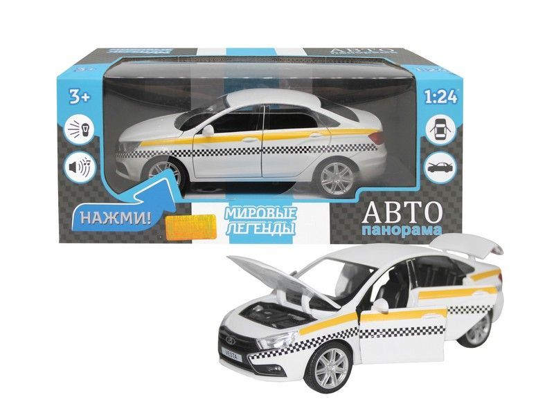 Металлическая лицензионная машинка LADA VESTA "Такси" седан - уменьшенная копия настоящего такси, которая прекрасно дополнит игрушечный автопарк городского транспорта. Модель машинки детально проработана, с ней можно развозить пассажиров в нужный пункт назначения. Машинка выпущена известной компанией по производству игрушек Автопанорама. Особенность коллекции в том, что все модели изготовлены по лицензии именитых автопроизводителей.